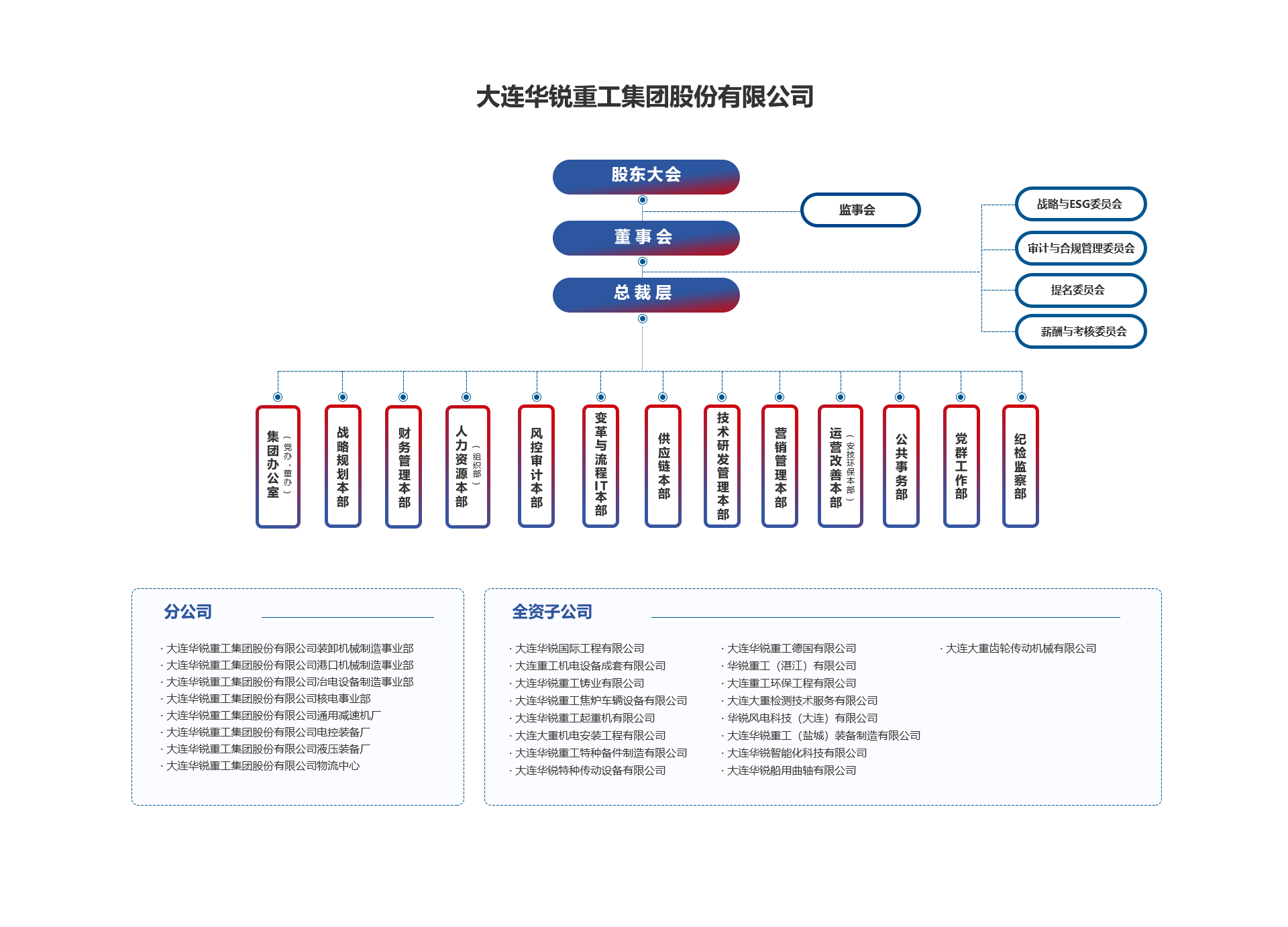 大连重工主要为冶金、港口、能源、矿山、工程、交通、造船、环保等国民经济基础产业提供大型高端装备和全生命周期智能服务解决方案,现已形成冶金机械、起重机械、散料装卸机械、港口机械、能源机械、传动与控制系统、船用零部件、工程机械、海工机械等九大产品结构。