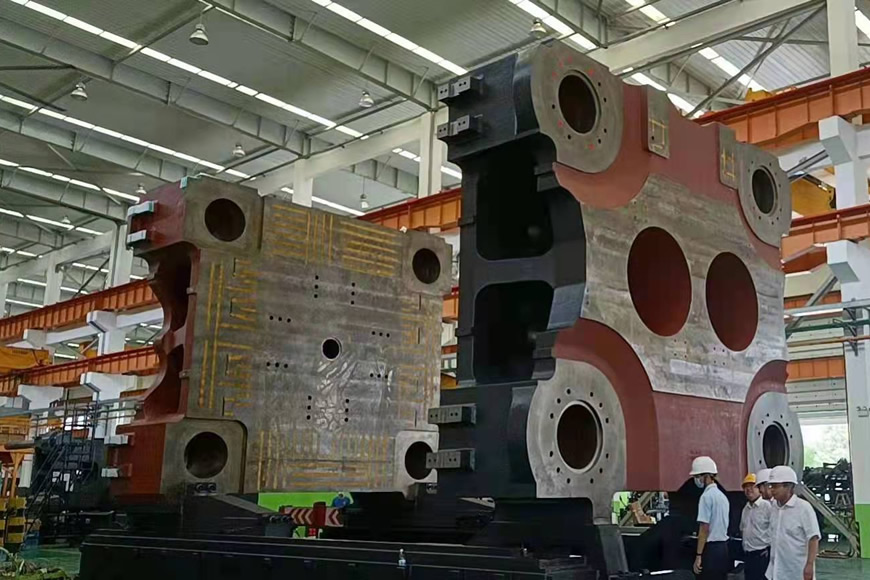 注塑机是利用塑料成型模具将热塑性塑料或热固性塑料制成各种形状的塑料制品的成型设备,能满足航空航天、工程机械等领域对超大型制品的需求。大型球墨铸铁模板是注塑机的关键部件。大连重工是国内少数几家能够研制该类产品的企业,产品型号涵盖了244-8500吨锁模力多种系列,成功为欧洲、北美及国内客户研制了6600吨级至8500吨级多型号注塑机模板,为我国大型注塑机产业发展提供了强有力的装备技术支撑。