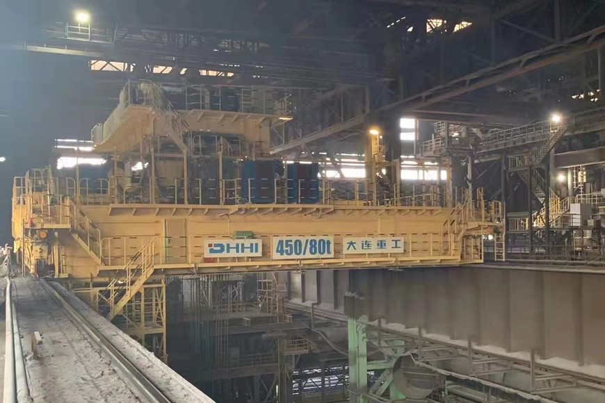 加料起重机是在炼钢车间向转炉加废钢和其他辅料(冷料)的起重机。大连重工经过多年的发展,加料起重机产品已发展为五种机型、十余种规格,包括:20+20t~110+110t、180/50t 、240/80t、260/80t、300/80t。